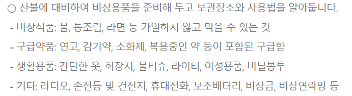 - 비상용품을 준비해 둡니다.