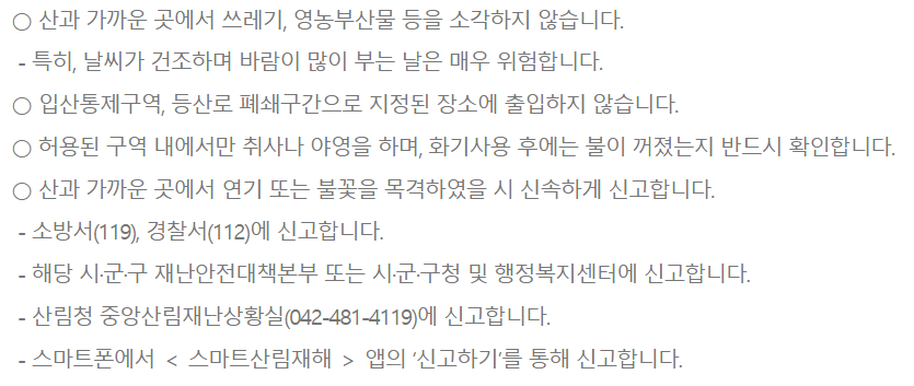 - 산불 안전을 지켜주시기 바랍니다.