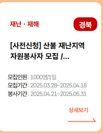 우리나라에서 산불이 난 적은 많아도 전국적으로 그것도 수십 곳에서 산불이 난 것은 이번이 최악인 듯합니다. 한순간의 삶의 터전을 빼앗긴 산불피해 이웃을 도와드릴 수 있는 방법이 있습니다. 현장에 방문하여 자원봉사를 하는 방법도 있지만 여러 가지 이유로 방문하지 못하는 분들은 후원하므로 마음을 전달하는 방법이 있습니다.