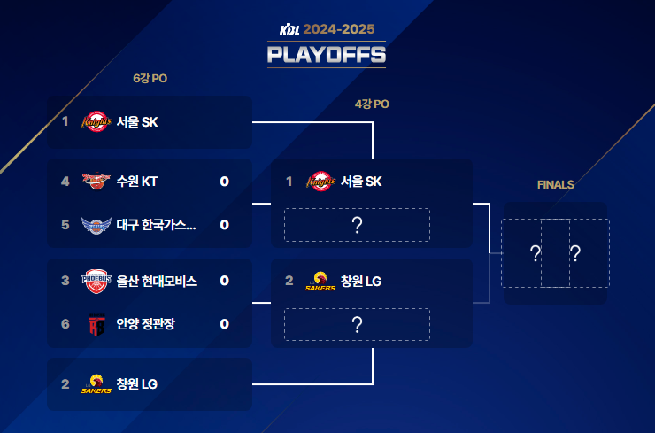 | 5월 9일 금요일 | [서울 SK vs (4위 vs 5위) 승자] 승자 vs [ 창원 LG vs (3위 vs 6위) 승자] 승자 |