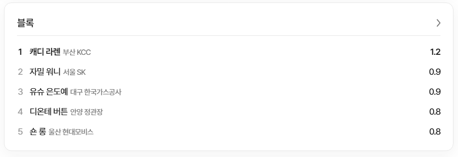 | 6 | 안양 정관장 | 25 | 229 | 0.463 | 16 |