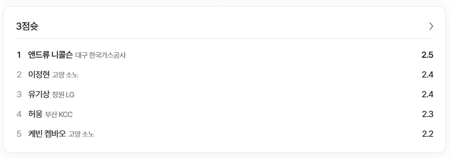 | 8 | 고양 소노 | 19 | 35 | 0.352 | 22 |